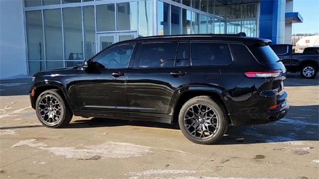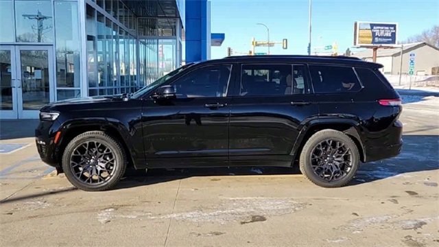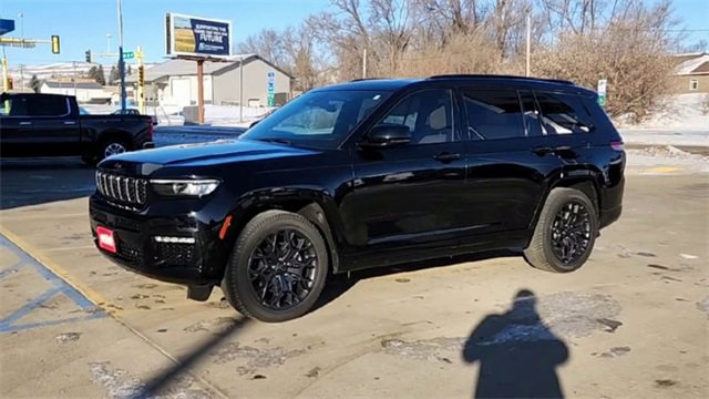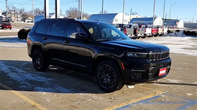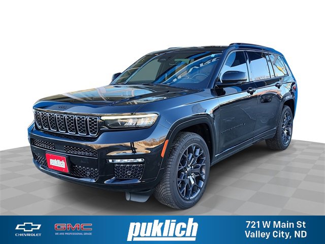 2023 Jeep Grand Cherokee L Summit Diamond Black Crystal Pearlcoat 4WD 3.6L V6 24V VVT 8-Speed Automatic10 Speakers, 19 Speakers High Performance Audio, 3.45 Rear Axle Ratio, 3rd row seats: split-bench, 4-Wheel Disc Brakes, 950 Watt Amplifier, ABS brakes, Active Noise Control System, Adaptive suspension, Air Conditioning, Alloy wheels, AM/FM radio: SiriusXM with 360L, Anti-whiplash front head restraints, Audio memory, Auto High-beam Headlights, Auto-dimming door mirrors, Auto-dimming Rear-View mirror, Auto-leveling suspension, Automatic temperature control, Brake assist, Bumpers: body-color, Compass, Delay-off headlights, Deluxe Headliner, Driver door bin, Driver vanity mirror, Dual front impact airbags, Dual front side impact airbags, Electronic Stability Control, Emergency communication system, Four wheel independent suspension, Front anti-roll bar, Front Bucket Seats, Front Center Armrest w/Storage, Front dual zone A/C, Front fog lights, Front Passenger Interactive Display, Front reading lights, Fully automatic headlights, Garage door transmitter, Genuine wood dashboard insert, Genuine wood door panel insert, Gloss Black Exterior Accents, Gloss Black Roof Rails, Heated door mirrors, Heated front seats, Heated rear seats, Heated steering wheel, High Altitude Package, Illuminated entry, Knee airbag, Leather steering wheel, Low tire pressure warning, Memory seat, Nappa Leather Seats, Navigation System, Neutral Gray Exterior Accents, Normal Duty Suspension, Occupant sensing airbag, Outside temperature display, Overhead airbag, Overhead console, Painted Door Cladding, Palermo Leather Door Trim, Palermo Leather Seats, Panic alarm, Passenger door bin, Passenger vanity mirror, Power door mirrors, Power driver seat, Power Fold Seatbacks, Power Liftgate, Power moonroof, Power passenger seat, Power steering, Power windows, Quick Order Package 23U Summit Reserve, Radio data system, Radio: Uconnect 5 Nav w/10.1 Display, Rain sensing wipers, Rear air conditioning, Rear anti-roll bar, Rear dual zone A/C, Rear reading lights, Rear seat center armrest, Rear window defroster, Rear window wiper, Reclining 3rd row seat, Remote keyless entry, Security system, Speed control, Speed-Sensitive Wipers, Split folding rear seat, Spoiler, Steering wheel memory, Steering wheel mounted audio controls, Summit Reserve, Summit Reserve Badge, Tachometer, Telescoping steering wheel, Tilt steering wheel, Traction control, Trip computer, Turn signal indicator mirrors, Two Tone Paint Group, Variably intermittent wipers, Ventilated front seats, Ventilated Rear Seats, Voltmeter, Wheels: 20 x 8.5 Fully Painted Aluminum Silver, Wheels: 21 x 9.0 Machined Face/Painted Aluminum, Wheels: 21 x 9 Black Painted Aluminum.Odometer is 17035 miles below market average!Come to www.puklichvalleycity.com To See Our Specials!!! Call us at 701-845-3071 For Help With Any of Our Departments!! We have a 4.8 of 5 score on Google!! We put you first at Puklich!! You drive and we'll ride with you!!!