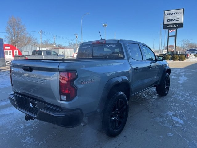 2025 Chevrolet Colorado Trail Boss Sterling Gray Metallic 4WD 2.7L I4 Turbocharged DOHC 16V LEV3-ULEV50 310hp 8-Speed Automatic4WD, 3.42 Rear Axle Ratio, 4-Way Manual Passenger Seat Adjuster, 4-Wheel Disc Brakes, 6 Speakers, 6-Speaker Audio System Feature, 6-Way Manual Driver Seat Adjuster, ABS brakes, Air Conditioning, Alloy wheels, AM/FM radio: SiriusXM, Apple CarPlay/Android Auto, Auto High-beam Headlights, Automatic Emergency Braking, Automatic temperature control, Black Spray-On Bedliner w/Chevrolet Logo, Brake assist, Chevy Safety Assist, Cloth Seat Trim, Compass, Delay-off headlights, Driver door bin, Driver vanity mirror, Dual front impact airbags, Dual front side impact airbags, Electronic Stability Control, Emergency communication system: OnStar, Engine Block Heater, Following Distance Indicator, Forward Collision Alert, Front anti-roll bar, Front Bucket Seats, Front Center Armrest, Front dual zone A/C, Front License Plate Kit, Front Pedestrian & Bicyclist Braking, Front wheel independent suspension, Heated door mirrors, Illuminated entry, IntelliBeam Automatic High Beam On/Off, Lane Keep Assist w/Lane Departure Warning, Low tire pressure warning, Navigation System, Occupant sensing airbag, Outside temperature display, Overhead airbag, Overhead console, Panic alarm, Passenger door bin, Passenger vanity mirror, Power door mirrors, Power steering, Power windows, Preferred Equipment Group 0TR, Radio data system, Radio: 11.3 Diagonal Advanced Color LCD Display, Rear reading lights, Rear step bumper, Rear window defroster, Remote keyless entry, Security system, SiriusXM Trial Subscription, Speed control, Speed-sensing steering, Split folding rear seat, Steering Wheel Mounted Audio Controls, Steering wheel mounted audio controls, Tachometer, Tilt steering wheel, Traction control, Trip computer, Variably intermittent wipers, Wheels: 18 x 8.5 Black High Gloss Aluminum, Wheels: 20 x 9 High Gloss Black Aluminum, Wireless Phone Projection, 4WD.Odometer is 3945 miles below market average!Come to www.puklichvalleycity.com To See Our Specials!!! Call us at 701-845-3071 For Help With Any of Our Departments!! We have a 4.8 of 5 score on Google!! We put you first at Puklich!! You drive and we'll ride with you!!!